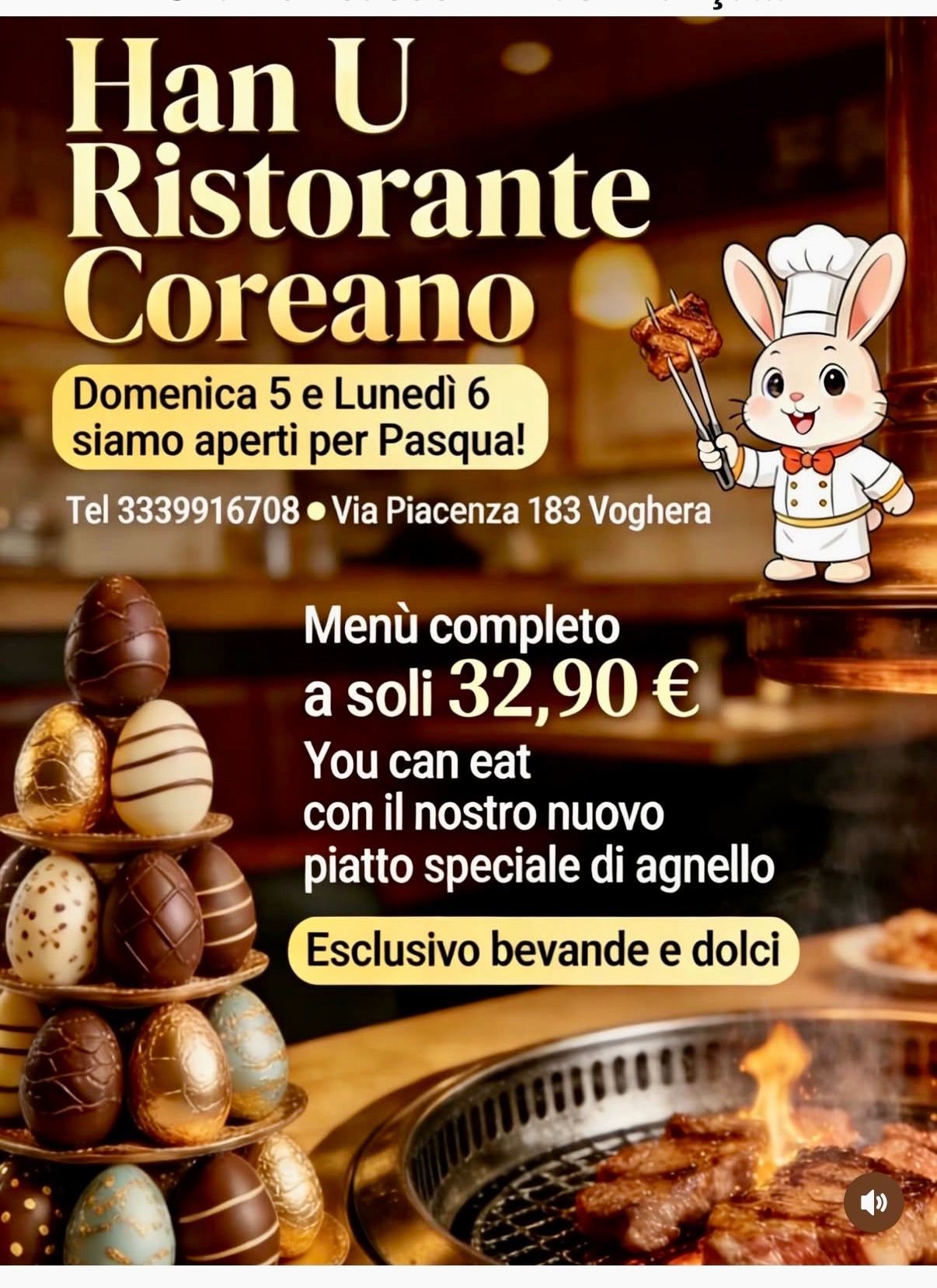 Benvenuti da Han U Ristorante Coreano, locale di nuova apertura che ha portato per primo a Voghera l’autentica esperienza del Korean BBQ con piastra al tavolo. Qui la cucina coreana diventa un momento di condivisione, gusto e divertimento. Selezioniamo ingredienti di qualità e li valorizziamo attraverso ricette tradizionali, marinature originali e una cottura conviviale che rende ogni pasto unico.